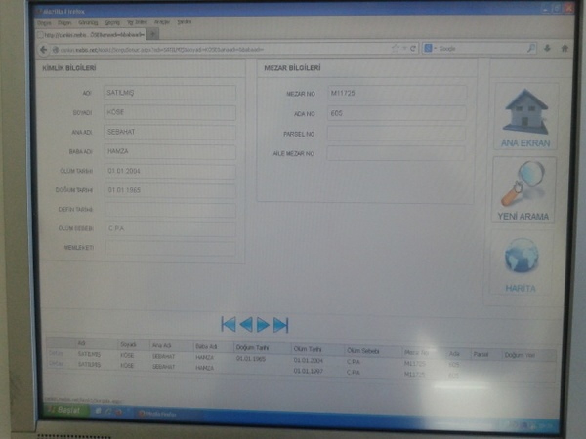 Mevtanın ismini girerek mezarının bulunduğu yerin krokisini veren mezarlık bilgi sistemini Türkiye’de kuran ilk belediyelerden biri olarak vatandaşlarımızın istedikleri mezara ulaşabilmelerini sağladık. Mezarlık Bilgi Sistemi(MEBİS ) sayesinde cenaze bilgilerini internet üzerinden giren vatandaşlar mezar yerinin krokisini görüp çıktı alabilir ve sevdiklerinizin kabirlerini kolaylıkla bulabilirsiniz.